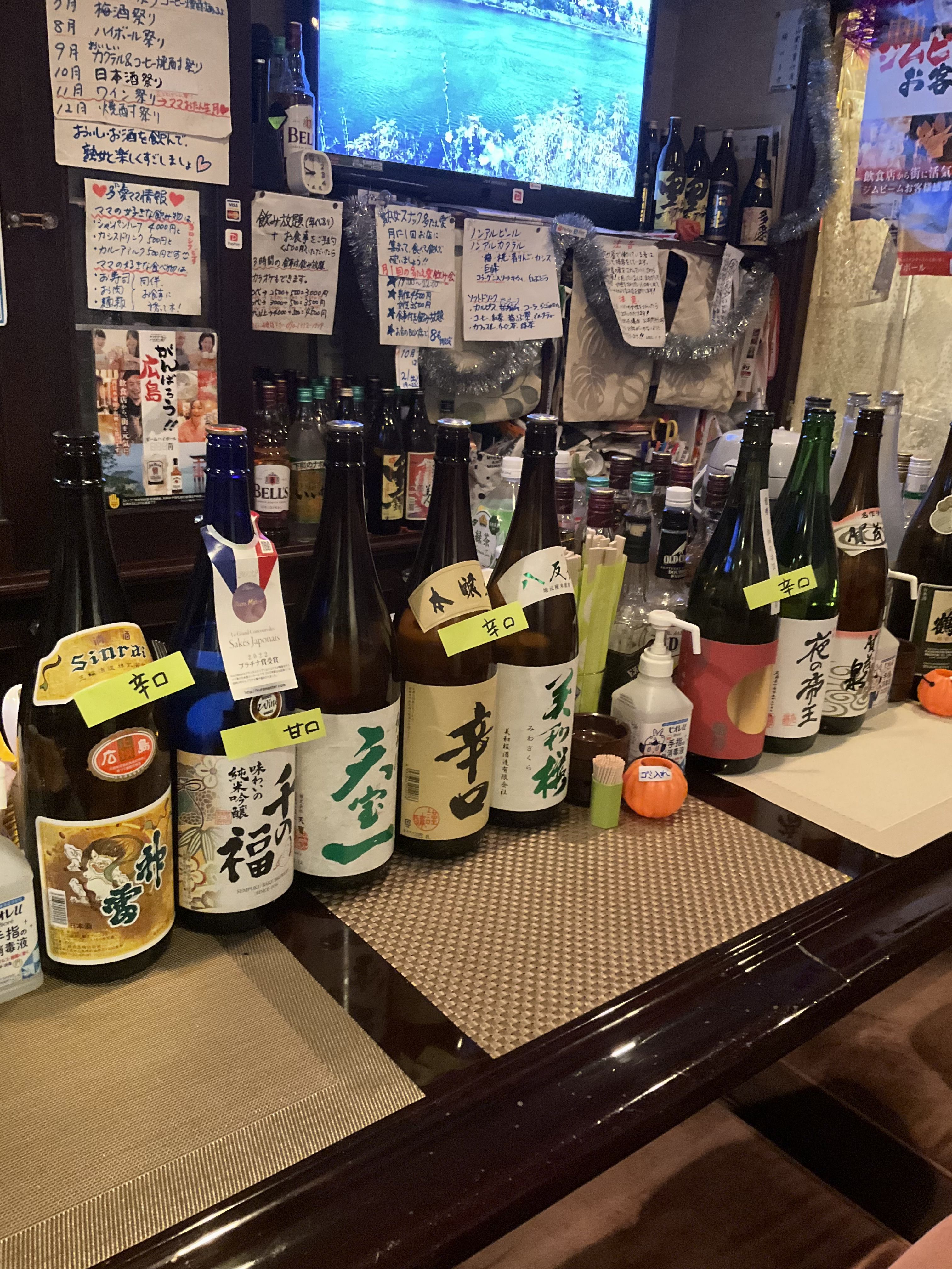 10月は日本酒祭り❣️一升瓶19本ご用意しています❣️熟女で食べて飲んでカラオケしましょ🎤お気軽にお越しくださいね❣️