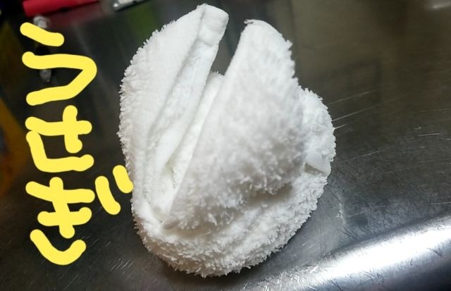 おしぼりでうさぎ作った♡(笑)(笑)